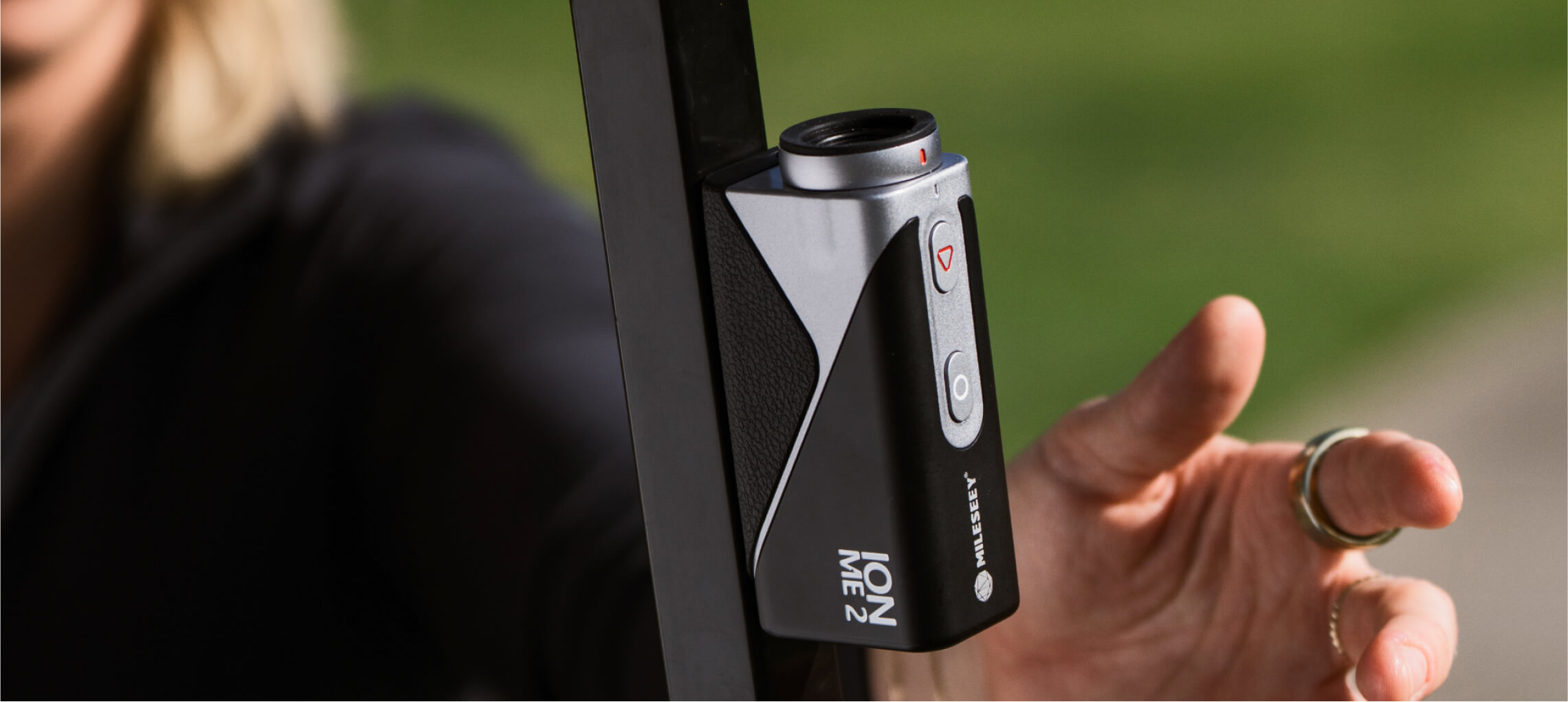The IONME2 features a magnetic cart mount that securely attaches to golf carts or clubs for quick and convenient access.
