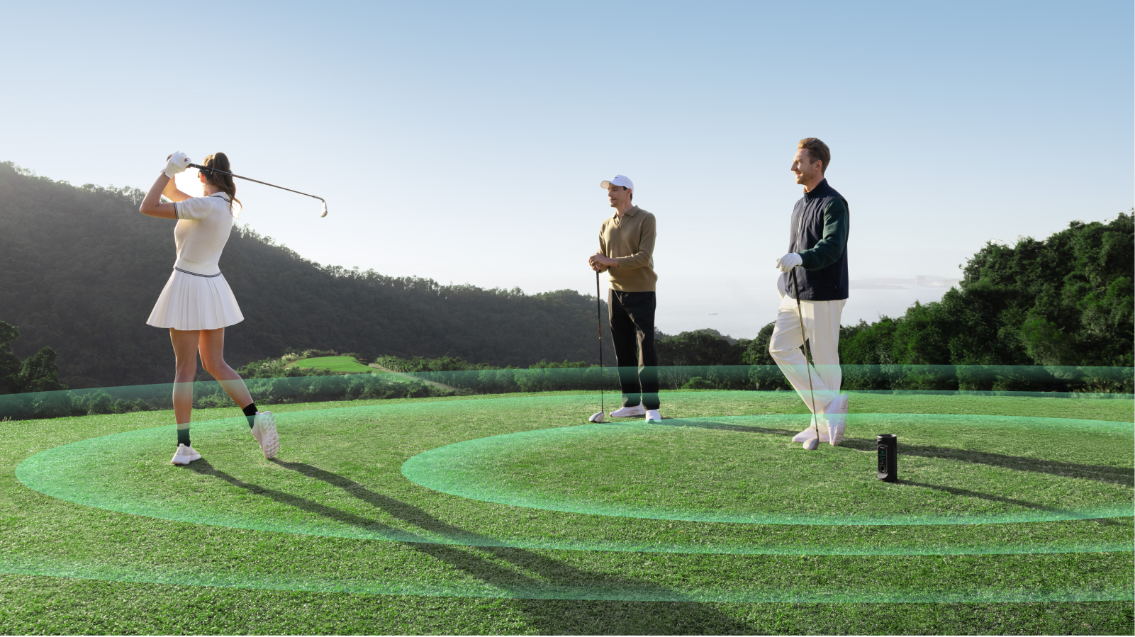 Engineered with a dual-band crossover system, a silk-dome tweeter, a racetrack woofer, and dual passive radiators, this speaker delivers tuneful, immersive sound. From crisp highs and warm mids to deep resonant bass, every detail comes alive—whether on the fairway, at home, or partying with friends.