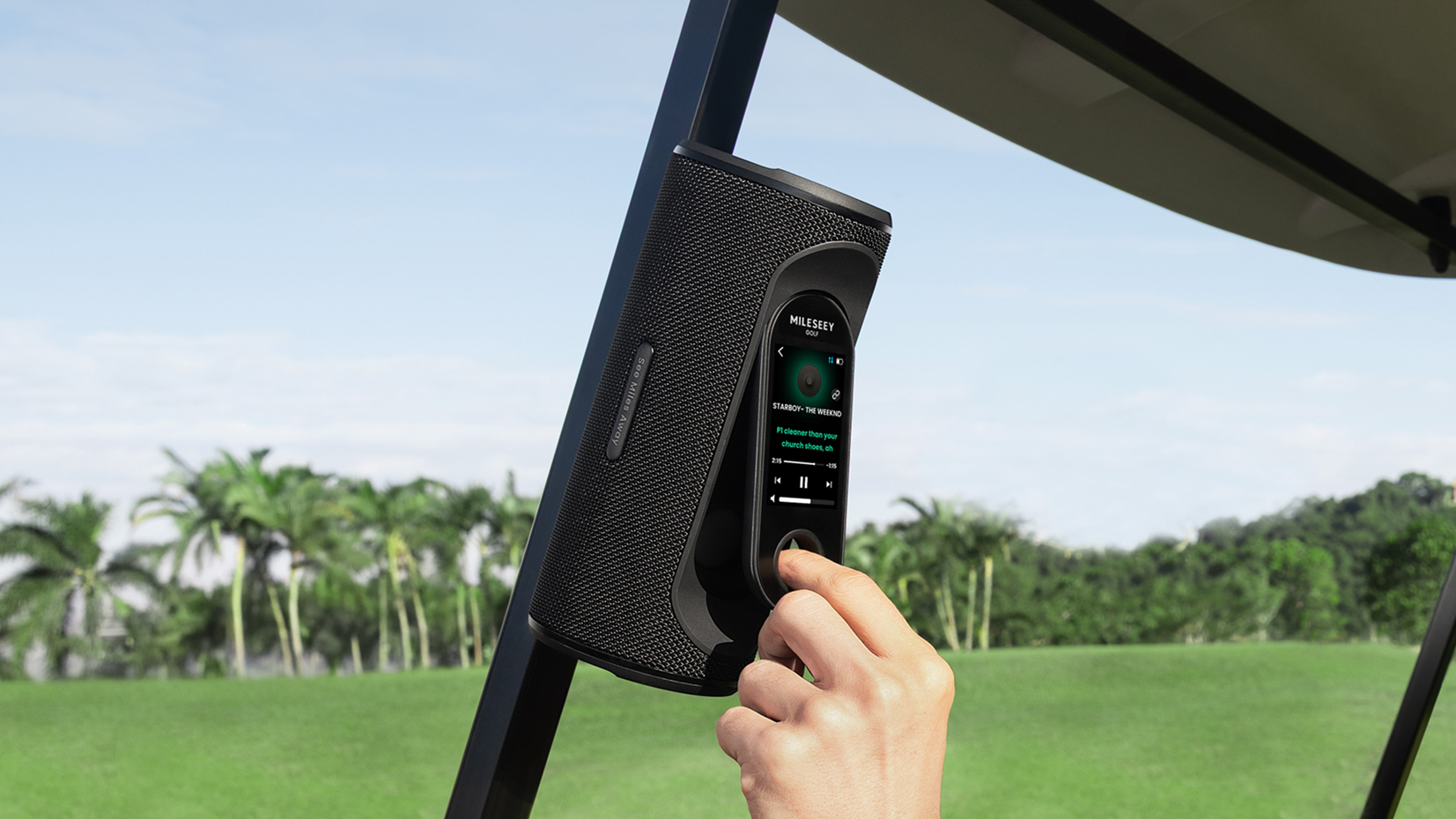 With 40W of bold, resonant audio, your favorite playlist moves with every swing. Crisp audible front, center, and back of green callouts make your planning easier. Whether you’re driving off the tee or getting ready to sink a putt, this speaker keeps you fully engaged, enhancing your every round.